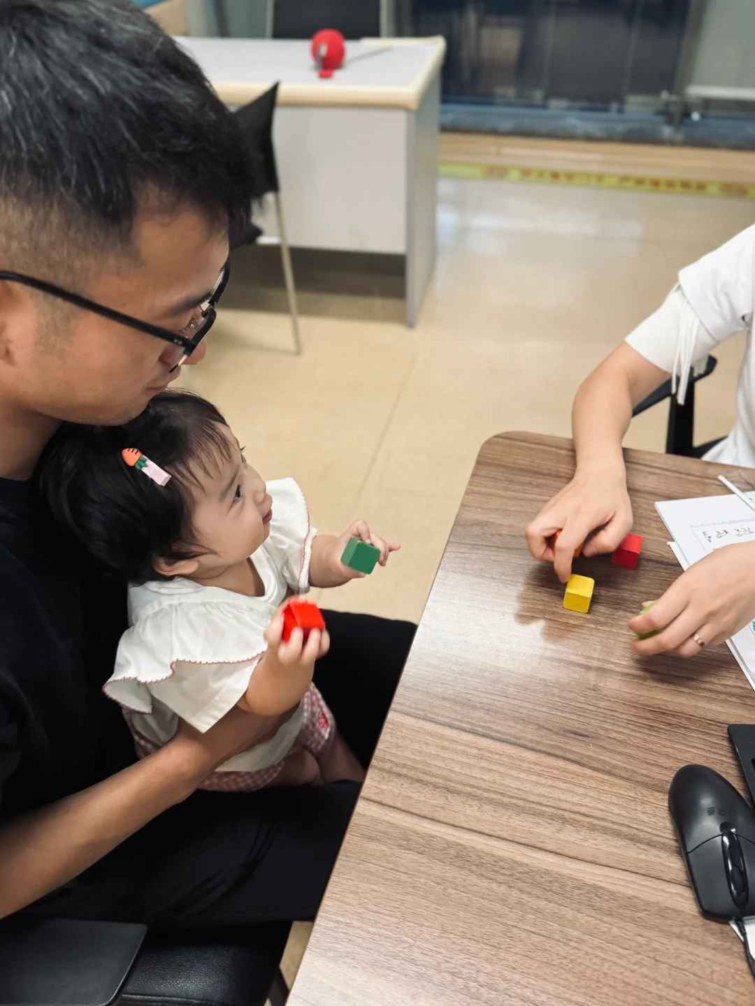 诊中:2楼取号➡️上6楼➡️不用分诊,直接去预检室量身高、体重、头围➡️医生叫号开单,再依次检查视力➡️听力(扫码填写问卷)➡️ddst发育筛查(叠积木、画画、拿糖果、抓取放玩具、指认家庭成员、五官、动物、水果、再见你好等简单指令)➡️3楼抽血➡️挂复诊号复诊