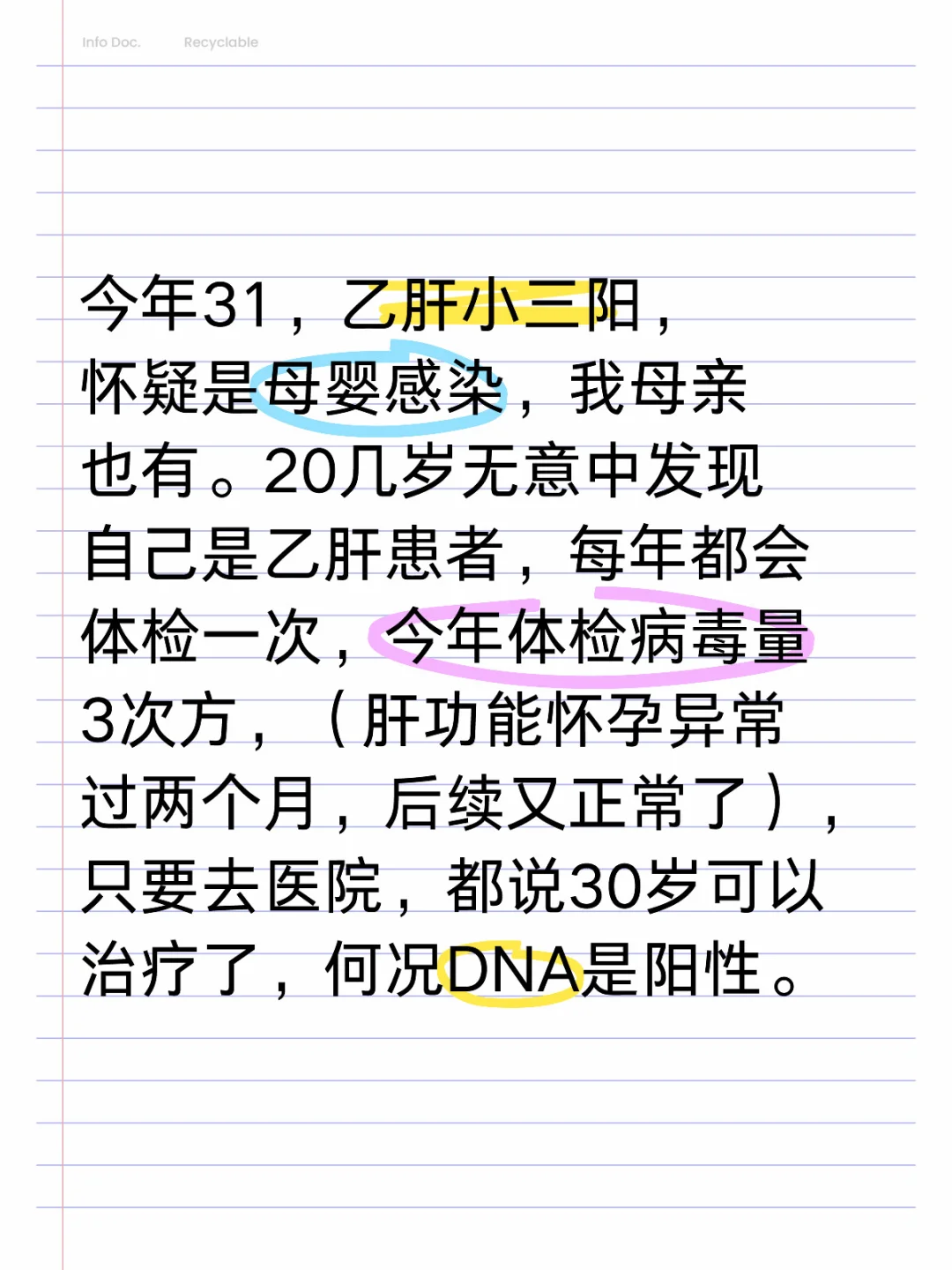 况DNA是阳性。可是我不想这么早吃药,网上一查,耐药性, 肾损伤,胃难受骨骼问题等等,吃了就停不下来,可能终身服药,三个月一复查,复查又是一千多,工作又很忙,又要找时间,想想后面的日子就很纠结。一旦平衡打破,是不可能停药的。但头上又悬一把刀,不知何时落?赌一把也不是,不赌也不是,不知道该怎么办?#乙肝#乙肝小三阳 #乙肝抗病毒治疗