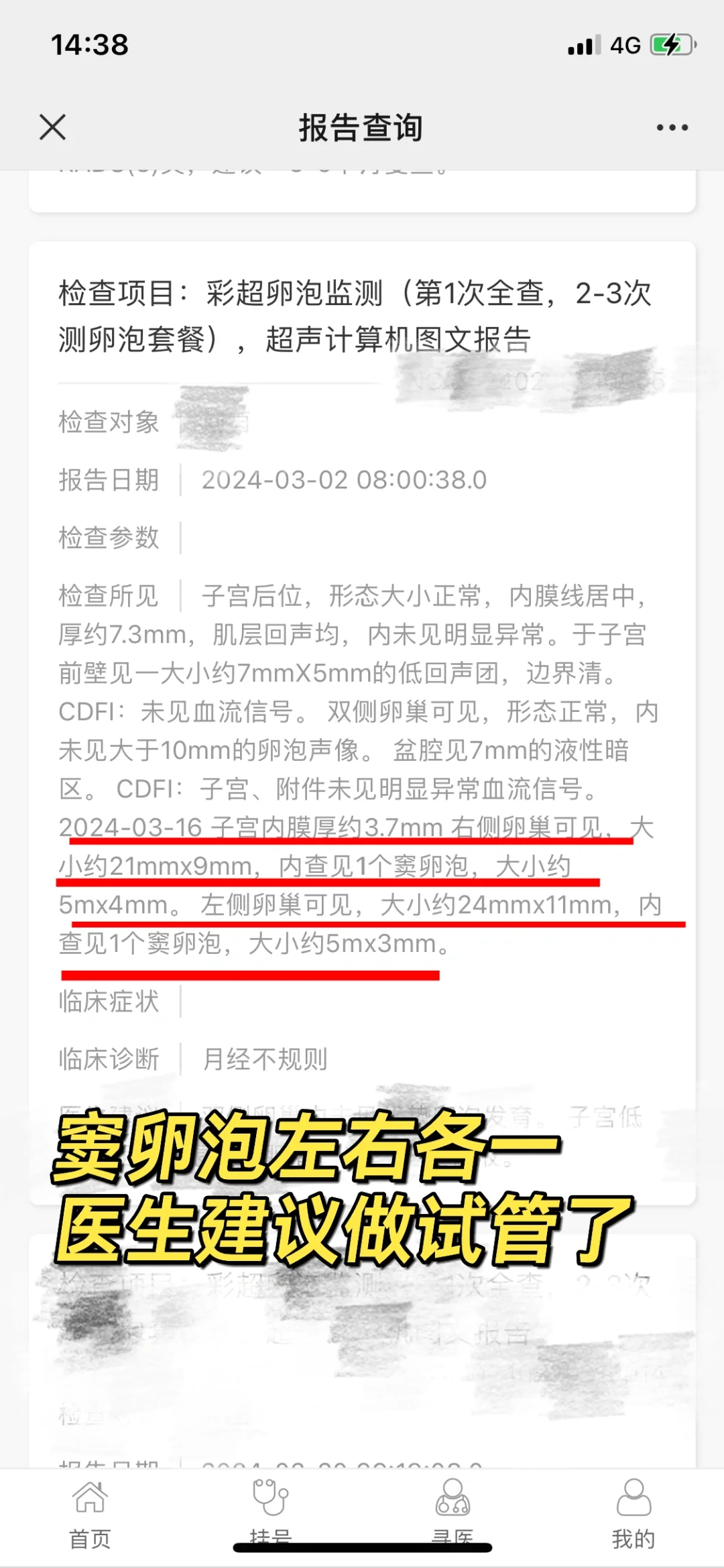 直到今年2024年3月16日,本来还说没中的话就做一次造影,看看输卵管有没有堵