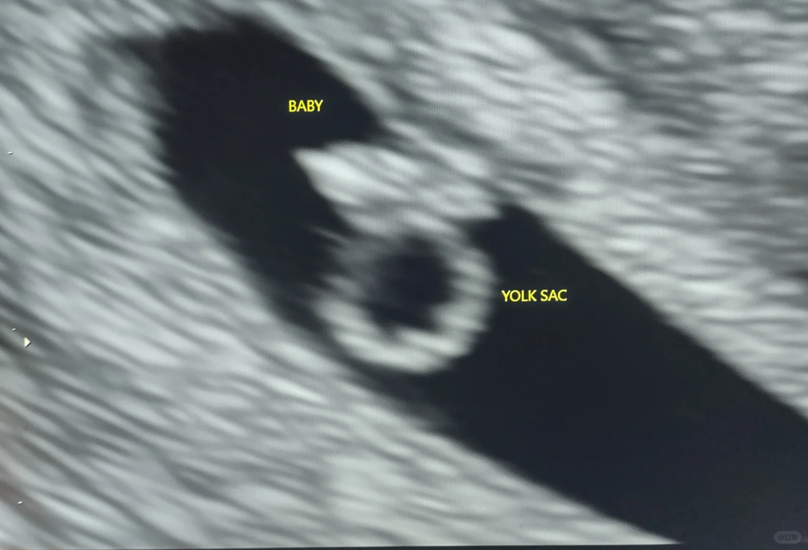 这医生还挺幽默,她说你看到那个钻石戒指💍了吗,钻石的部分就是baby,然后我问她那戒指部分是什么,她说噢,那是宝宝发育需要的营养,然后她就帮我标注在图上,告诉我可以用手机拍下来,因为报告要到下午才能发到我账号。她还告诉我中间那个一闪一闪的就是宝宝